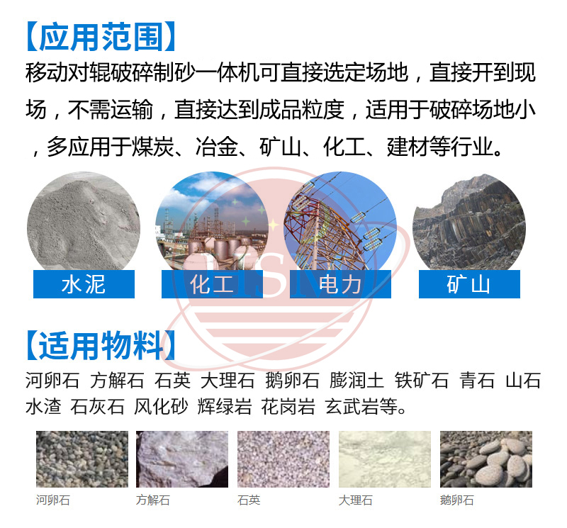 适用物料:建筑垃圾、河卵石、石英砂、花岗岩、玄武岩、铁矿石、石灰石、石英石等。