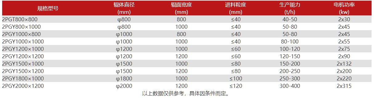 对辊制砂机分弹簧式和液压式,液压对辊制砂机的时产量从40-400吨不等,能满足时产量200吨的型号有2GY1500X1000、2GY1500X1200和2GY1800X100,能满足要求的液压对辊制砂机型号这么多,怎么选择更优惠?价格多少钱?这一点还是需要跟大家讲清楚,市面上只要厂家不一样,他们的价格就会不同,就算厂家一样了,在不同时间段购买机器价格也会略有差异,这和大家买衣服是一个道理,那么究竟怎么选才能更实惠?这里给大家推荐一家厂家,说完它的优势后,大家可以照着这个找厂家了,多看几个对比对比就懂了。下面给您看看液压对辊制砂机的具体型号参数